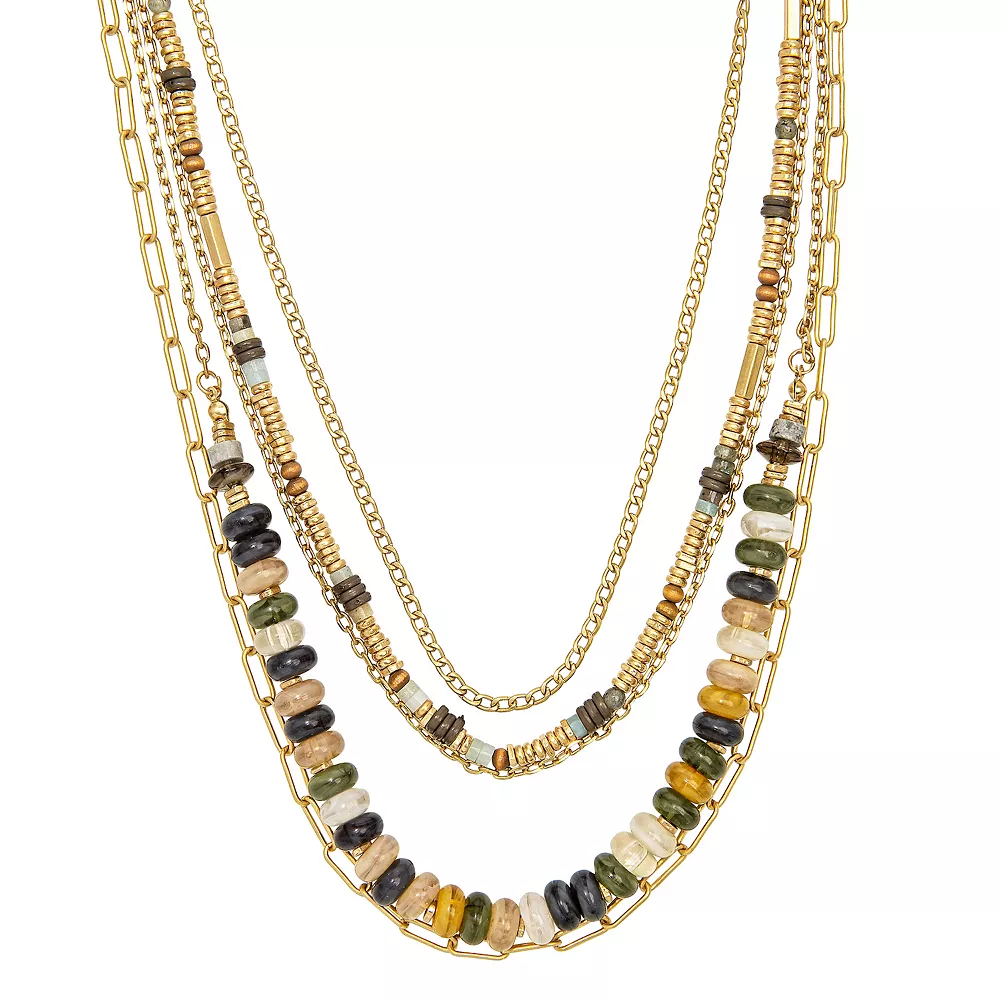 This Sonoma Goods For Life Gold Tone 5 Row Multi Chunky Bead and Chains Necklace is perfectly sized.