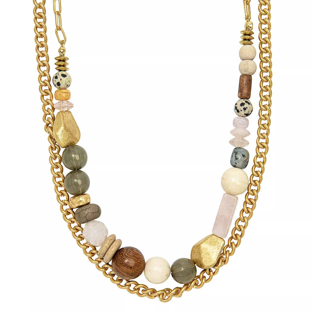 This Sonoma Goods For Life Gold Tone Chunky Bead and Curb Chain Necklace is stunning.