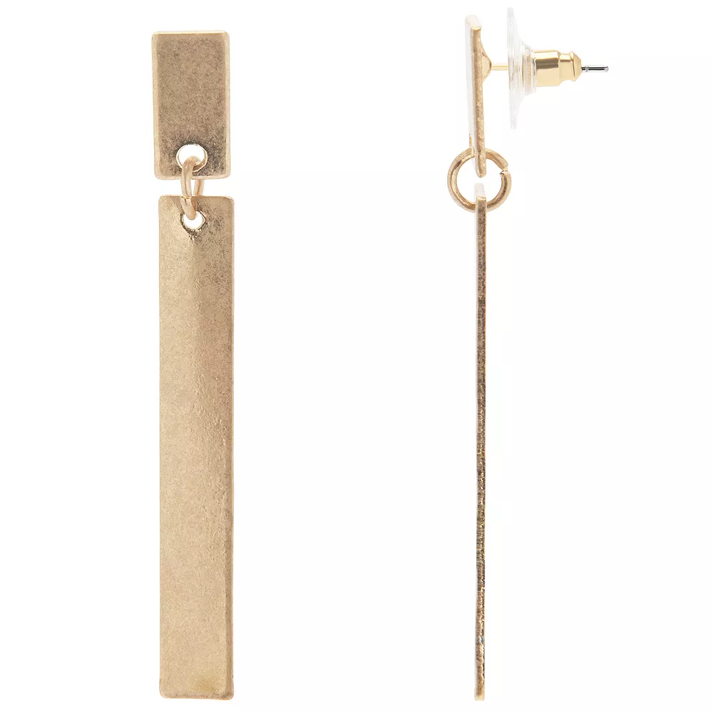 Raise the bar for your next look with these unique Sonoma Goods For Life Gold Tone Linear Bar Drop Earrings.