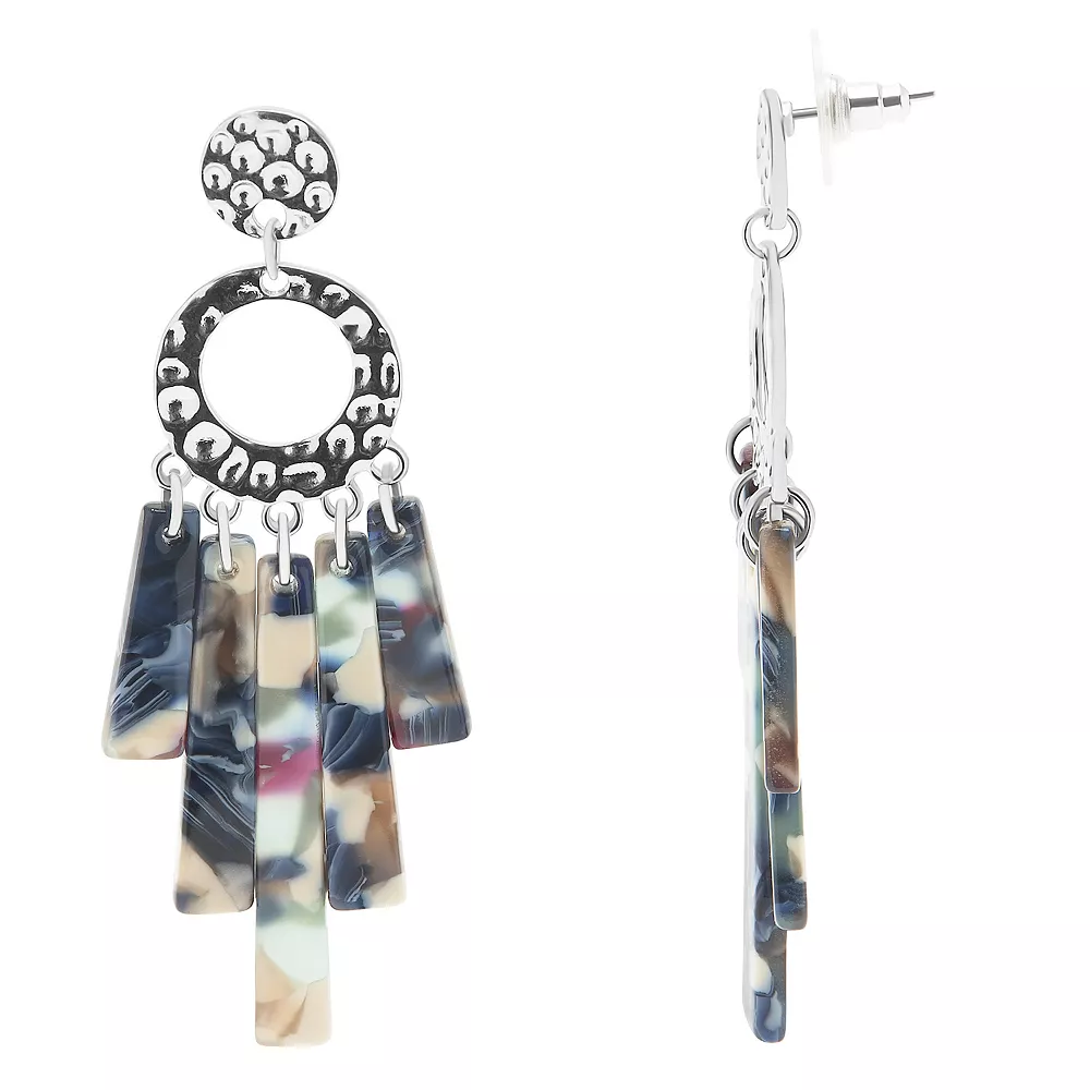 Sonoma Goods For Life® Silver Tone Hammered Post With Blue Acetate Shaky Stick Drop Earrings